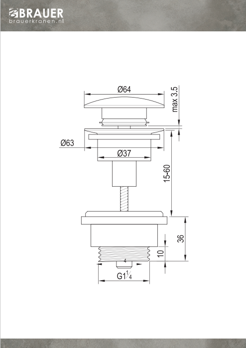 Afvoerplug Brauer, verkrijgbaar bij Stone Company.
