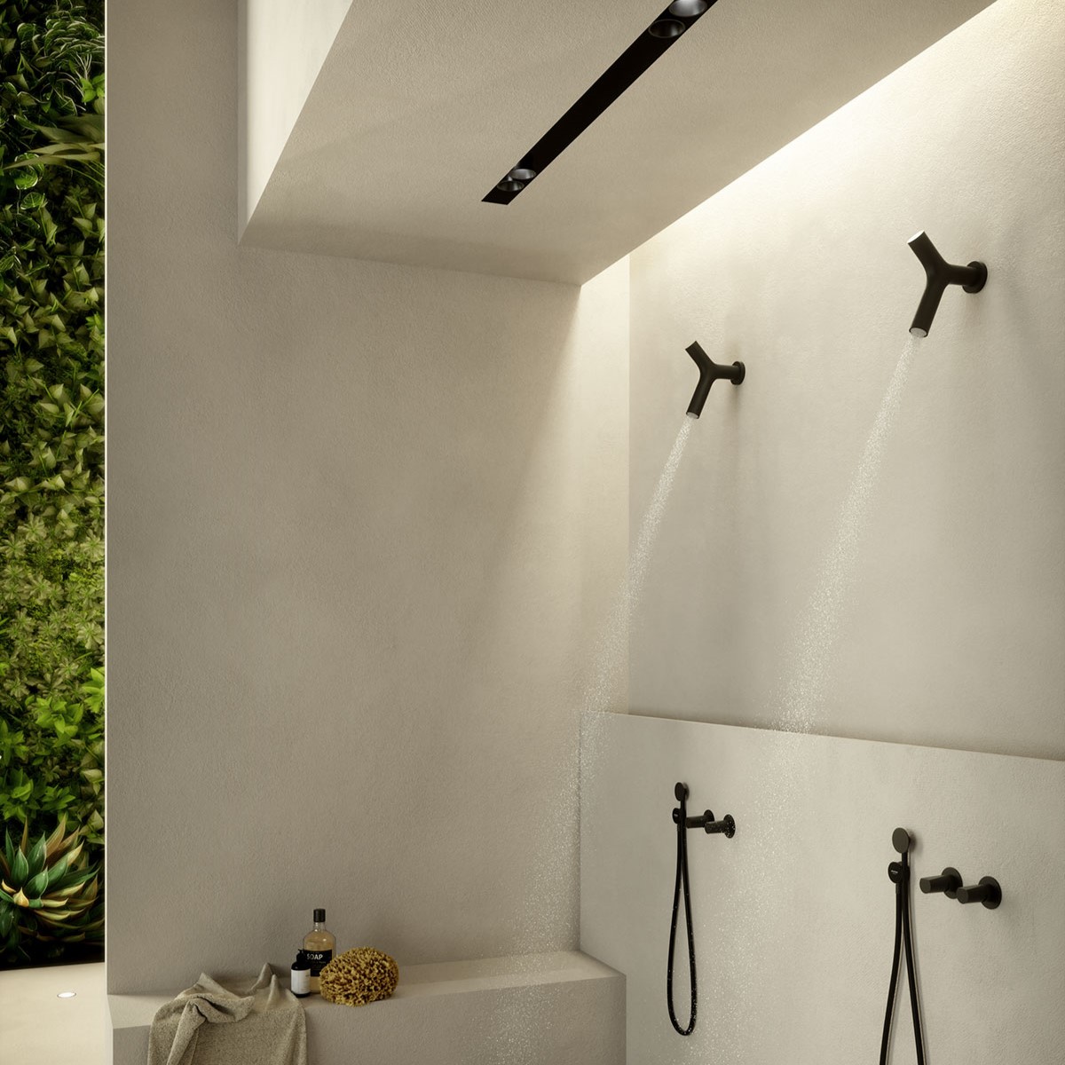 U krijgt sfeervol licht zonder extra schakelaars, een zachte, gelijkmatige straal en een solide messing constructie die lang meegaat. Apollo1 is ideaal voor compacte nissen en een minimalistische look. Apollo2 en Apollo3 voegen sfeerlicht toe voor wellness-douches en hotelsuites. Apollo4 biedt extra comfort met een gerichte massage-straal én brede regendouche. Dankzij wand of plafond montage stemt u Apollo precies af op uw badkamer interieur.