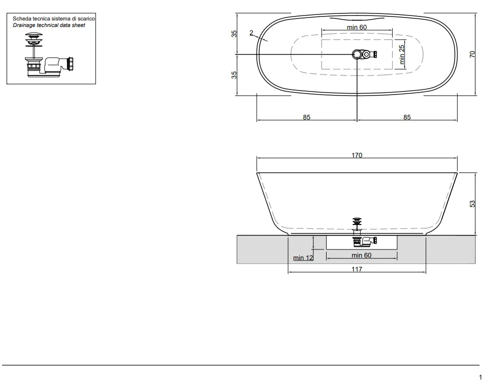 Antonio Lupi Baìas bad, ovaal ligbad, leverbaar in diverse kleuren en compleet met afvoer, drukplug, sifon en flexibele slang.