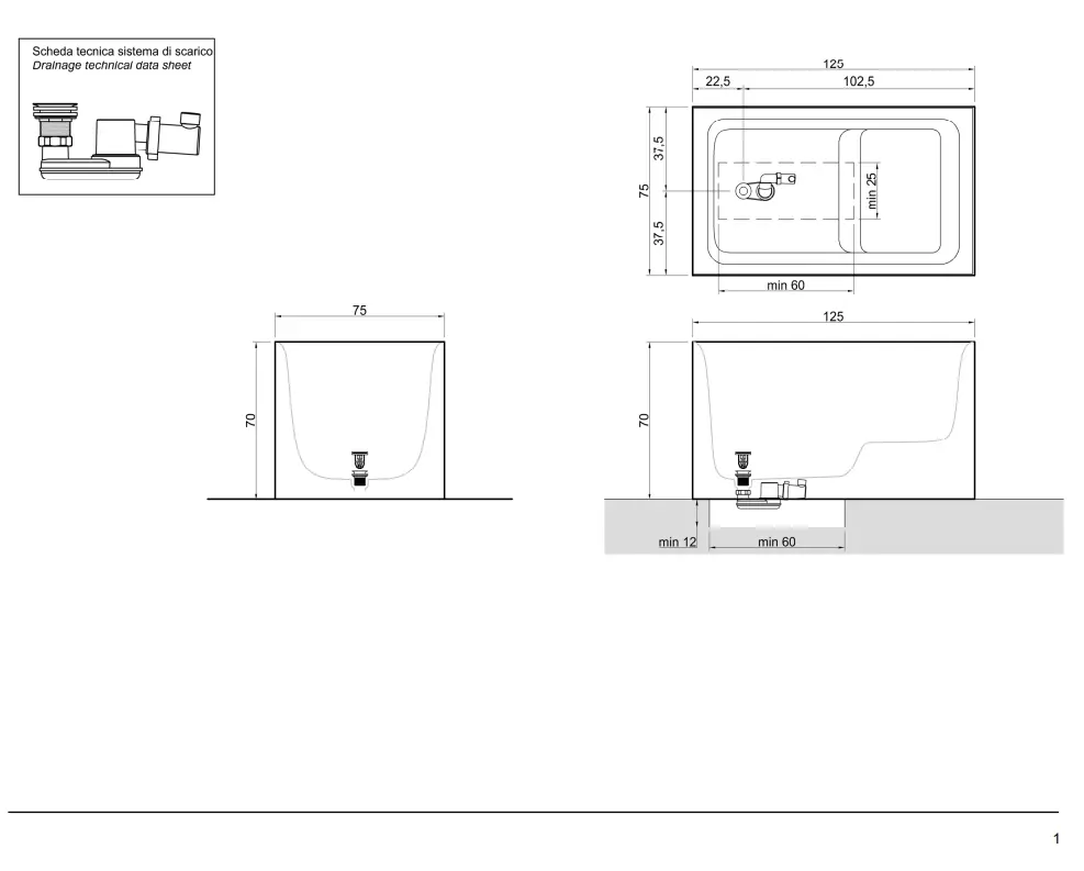 Afmeting in cm L 125 x P 75 x H 70
