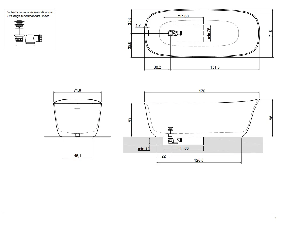 Antonio Lupi Dafne bad, ovaal ligbad, compleet leverbaar met afvoer, drukplug, sifon en flexibele slang.