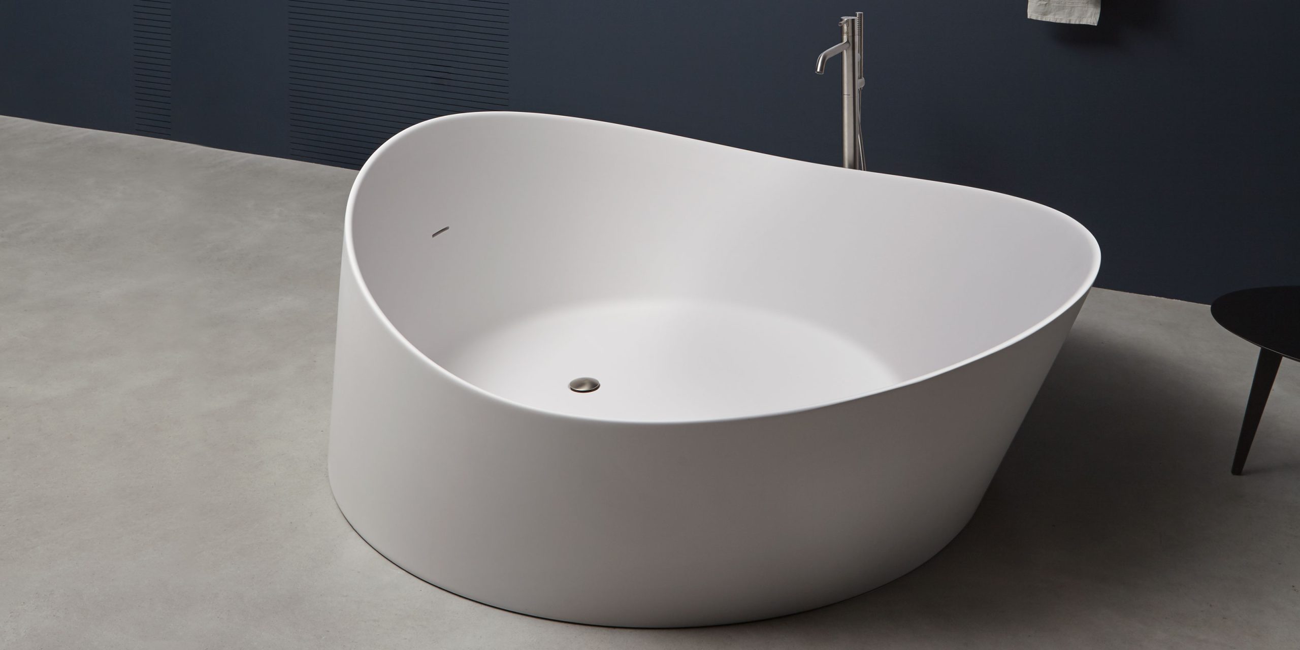 Antonio Lupi Dune bad, ovaal ligbad, compleet leverbaar met afvoer, drukplug, sifon en flexibele slang. Verkrijgbaar bij Stone Company.