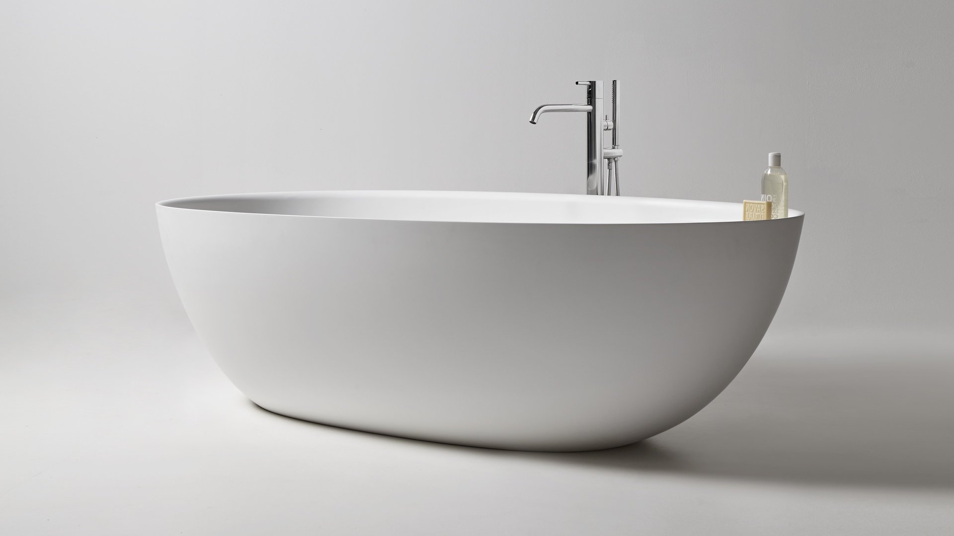 Antonio Lupi Eclipse bad, ovaal ligbad, leverbaar in diverse kleuren compleet met afvoer, drukplug, sifon en flexibele slang.