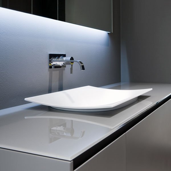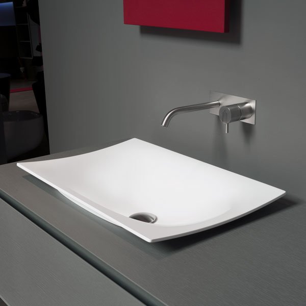 Antonio Lupi Fogliomood63 waskom, Rechthoekige opzetspoelbak in materiaal Flumood of Colormood. Verkrijgbaar bij Stone Company.