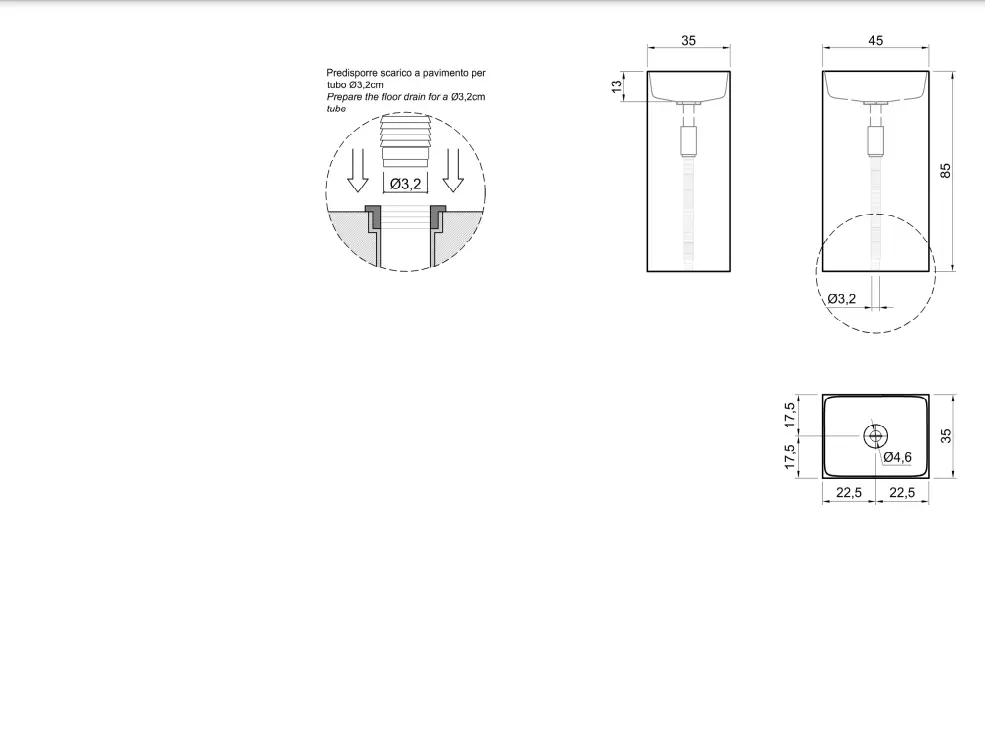 Antonio Lupi Fusto185 wastafel, Vrijstaande natuursteen wastafel met vloerafvoer, compleet met open plug, sifon en flexibele slang. Verkrijgbaar bij Stone Company.