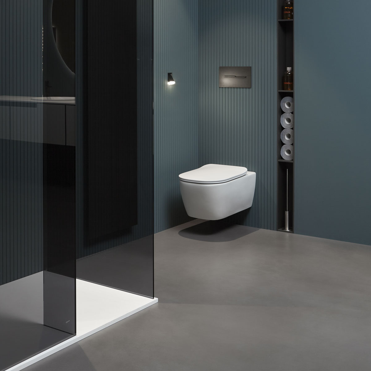 Kies de afwerking die bij uw stijl past. Komodo1 is uitgevoerd in glanzend keramiek; deze finish weerkaatst licht en geeft een frisse, luxe uitstraling. Komodo3 is uitgevoerd in satin keramiek; de zachte, matte look combineert mooi met matte tegels en natuurlijke materialen. Beide varianten bieden dezelfde functies en dezelfde maatvoering.