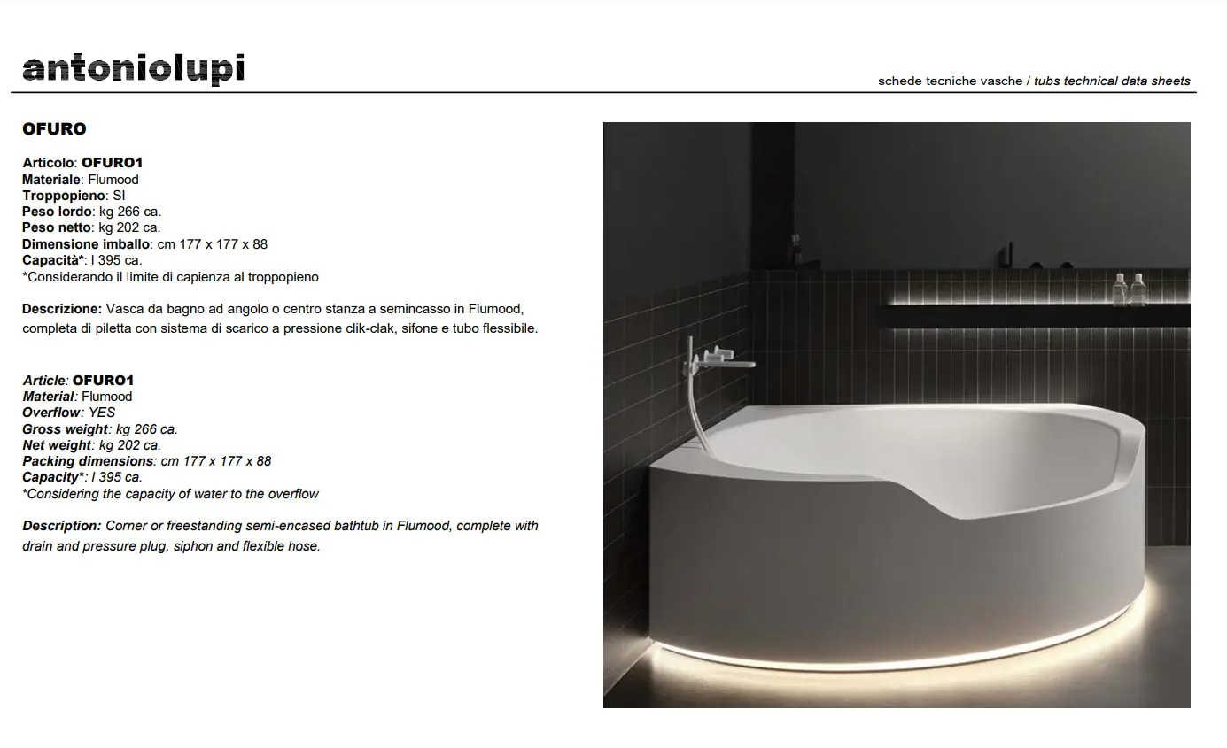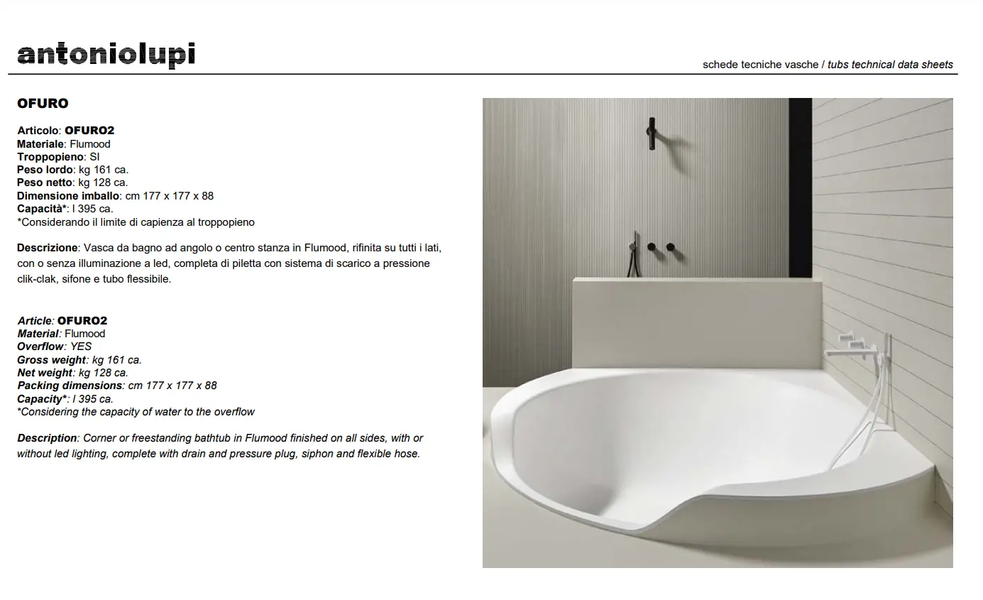 Het Antonio Lupi bad is niet zomaar een functioneel element in de badkamer; het is een kunstwerk op zich. Het exclusieve Italiaanse design gecombineerd met onberispelijk vakmanschap zorgt voor een badervaring die verder gaat dan puur functioneel gebruik. Het merk Antonio Lupi heeft zich gevestigd als de belichaming van luxe en verfijning, en het Antonio Lupi Ofuro bad vormt hierop geen uitzondering.