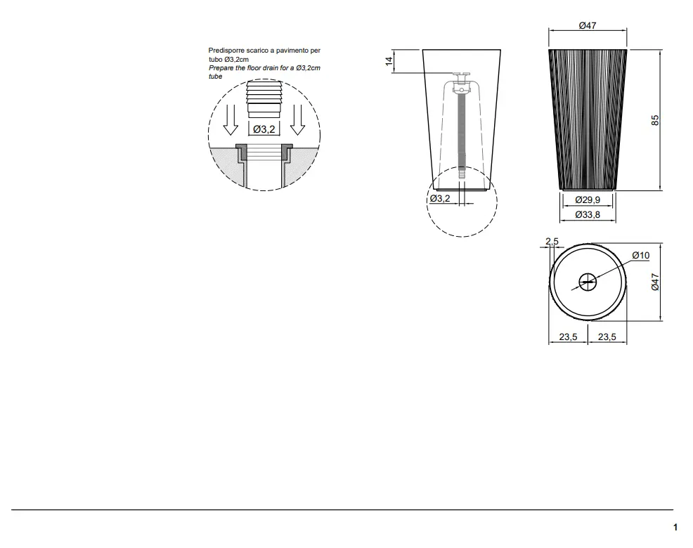 Afmeting in cm Artikelcode Plisse: L 85 x Ø 47