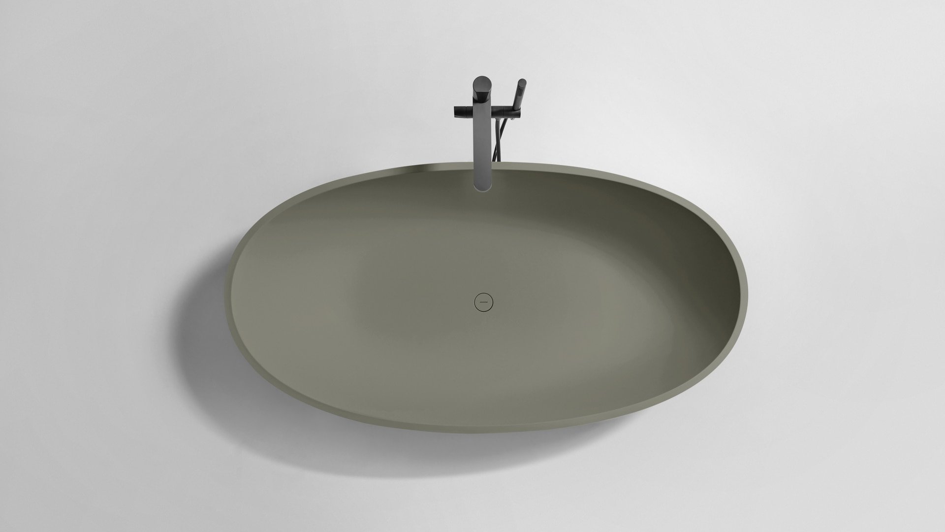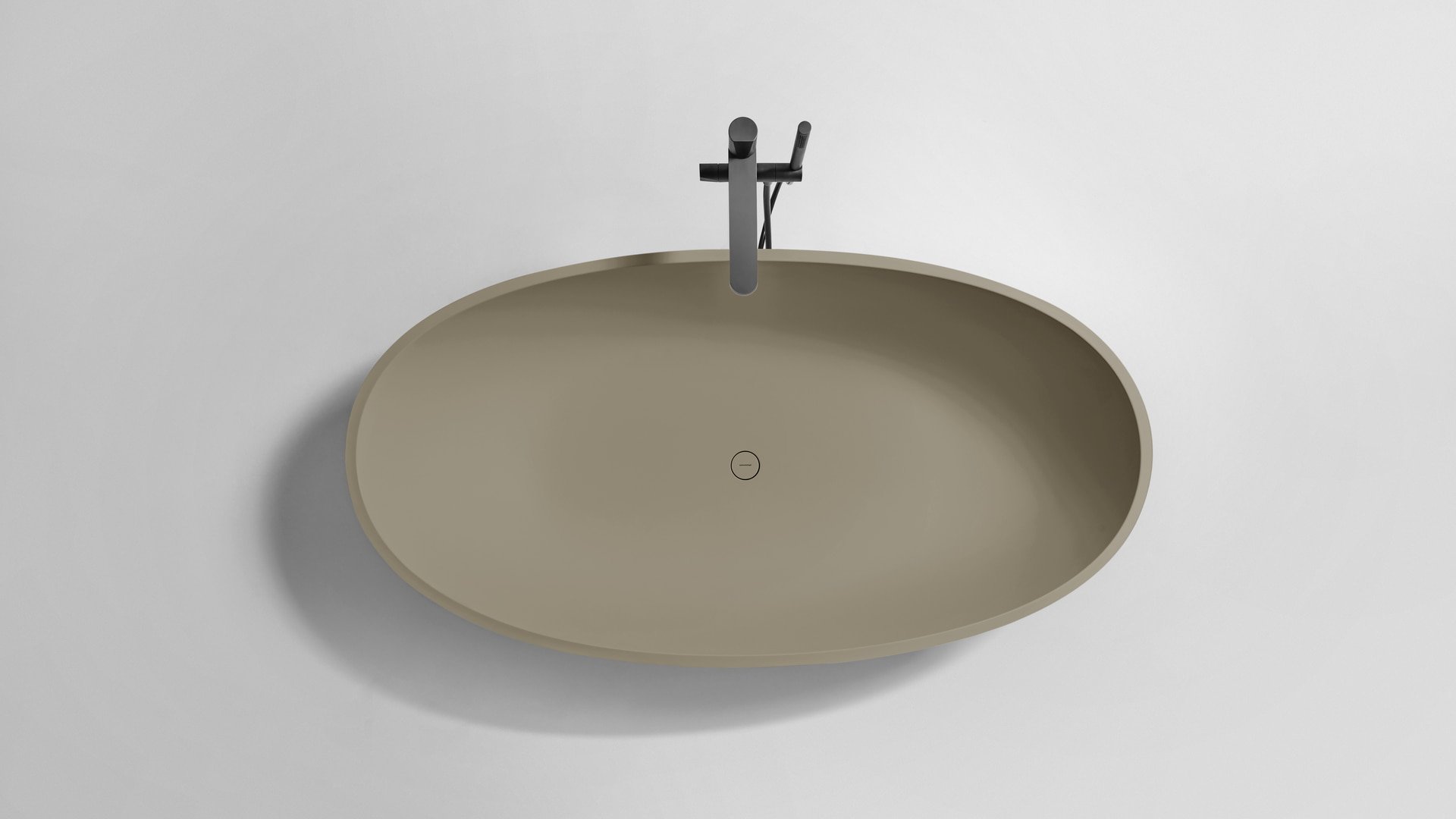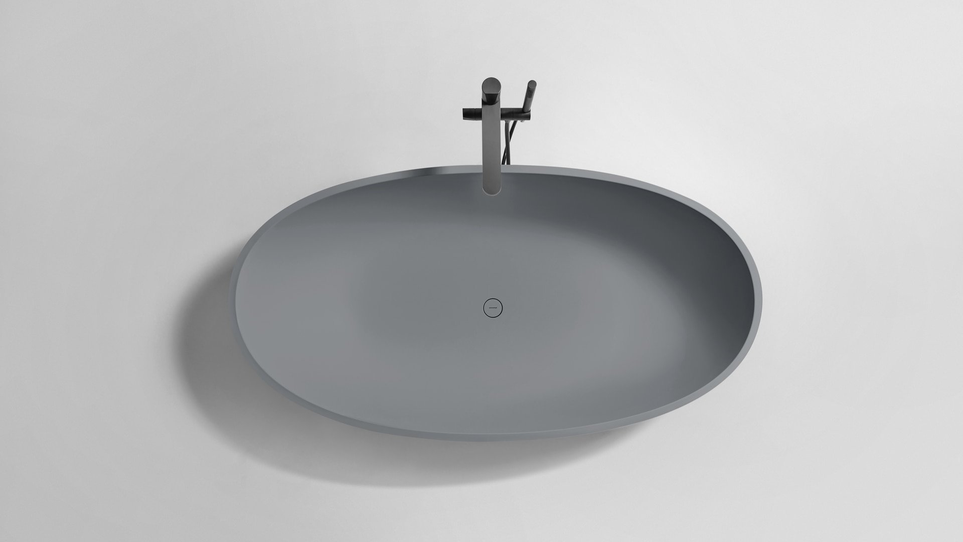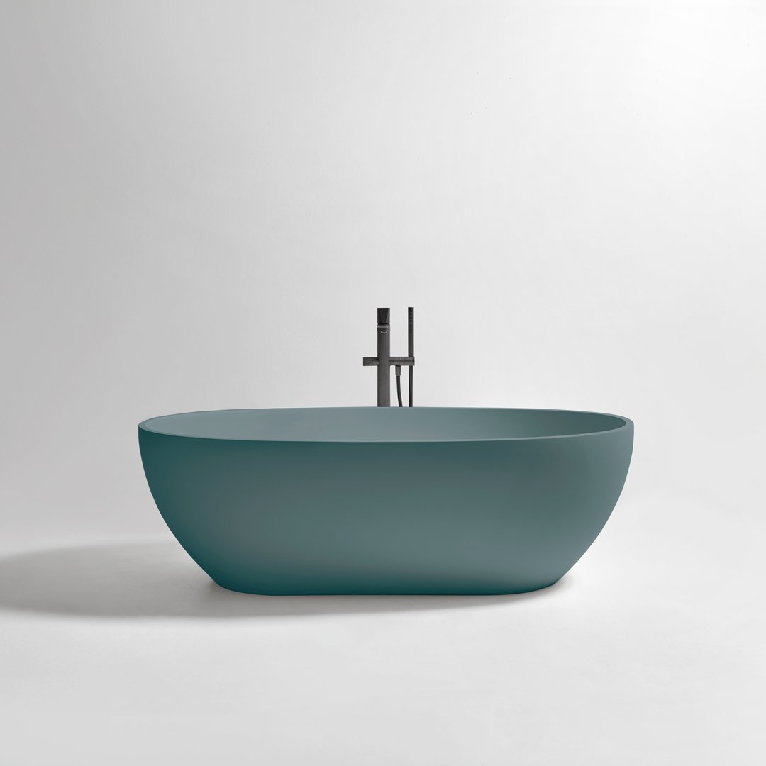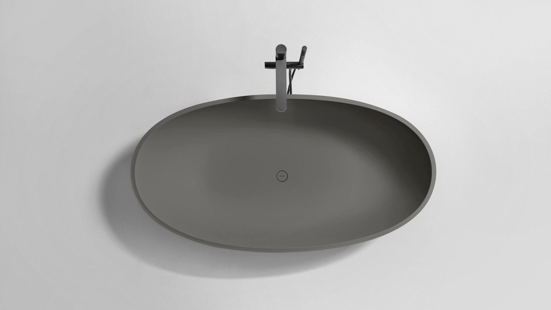 Antonio Lupi Reflexmood bad, ovaal ligbad flumood of colormood leverbaar in diverse kleuren compleet met afvoer, drukplug, sifon en flexibele slang. Verkrijgbaar bij Stone Company.