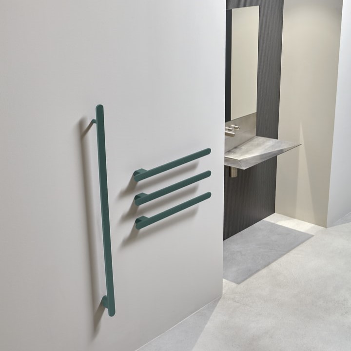 Rigo is ontworpen als een lineair, afgerond profiel dat u horizontaal of verticaal tegen de wand monteert. Eén element naast de douche volstaat voor een compacte opstelling, terwijl meerdere Rigo’s samen een grafische compositie vormen met extra capaciteit. Omdat Rigo elektrisch is, hebt u geen cv-aansluiting nodig en ervaart u snelle, gelijkmatige warmte precies waar u die wilt. Zo beschikt u altijd over een warme, droge handdoek en blijft de ruimte rustig dankzij de onopvallende vorm en de strakke montage.