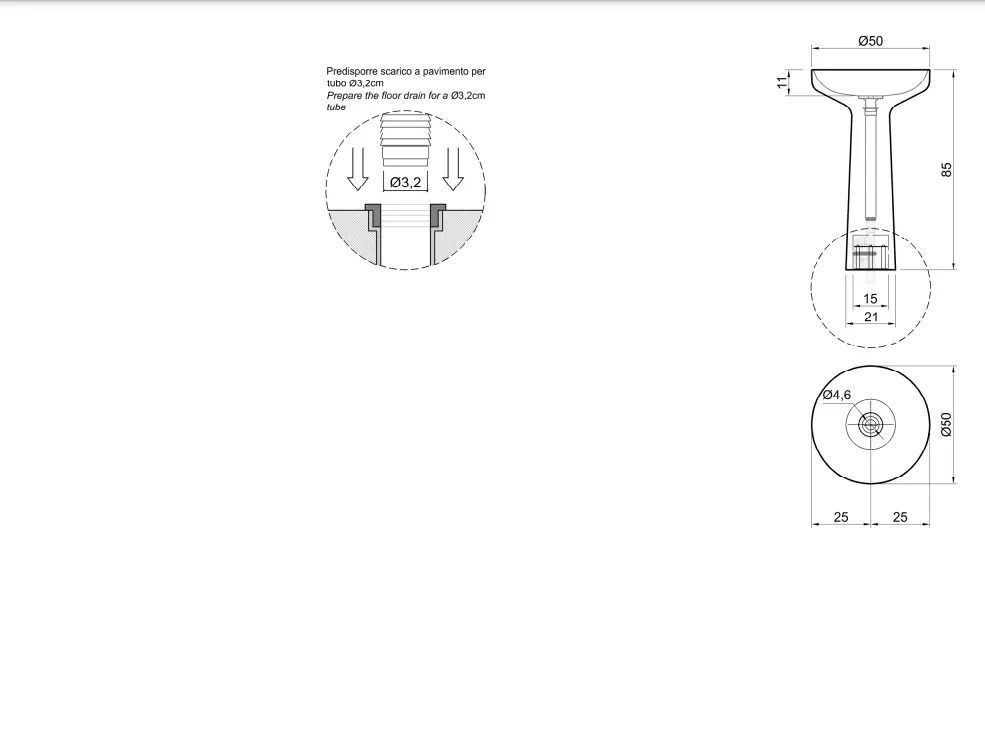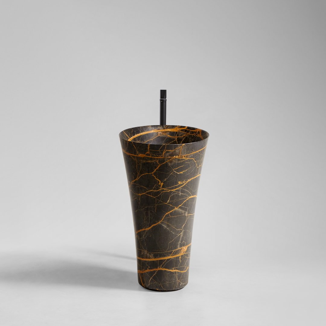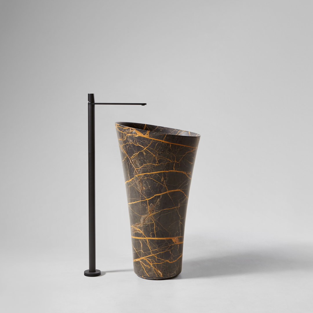 Antonio Lupi Tuba90 wastafel, Vrijstaande natuursteen wastafel met vloerafvoer, compleet met open plug, sifon en flexibele slang. Verkrijgbaar bij Stone Company.