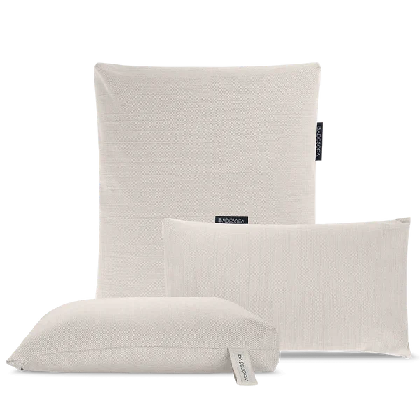 De Badesofa complete badkussen set is opgebouwd uit een sterke kussenhoes, een ademend binnenkussen en een verzwaard zandgewicht, waardoor elk kussen comfortabel ligt en zijn vorm behoudt. Het gebruikte materiaal is