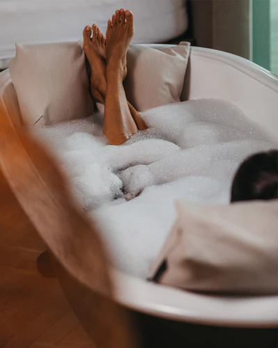 Comfort en ondersteuning in bad met de Badesofa voetkussen