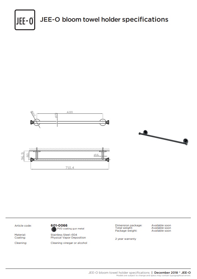 Bloom handdoekhouder JEE-O, handdoekhouder voor op uw badkamer. Past erg mooi bij de andere producten van Bloom. De handdoekhouder is 71 cm lang en gemaakt van RVS. Nu verkrijgbaar bij