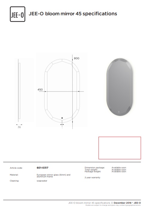 Bloom spiegel 45 JEE-O, Spiegel heeft een instelbaar LED backlight. De spiegel is gemaakt van European mirror glass en is 6 millimeter dik. Hij is afgewerkt met een aluminium frame. Nu verkrijgbaar bij Stone Company. Hier vindt u artikelen van het hoogwaardige merk JEE-O.