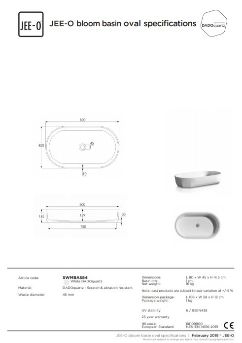 Bloom waskom ovaal JEE-O, Waskom gemaakt van DADOquartz. Verkrijgbaar in verschillende kleuren bij Stone Company. De afmetingen zijn L 80 x B 45 x H 14,5. Nu verkrijgbaar bij Stone Company. Hier vindt u artikelen van het hoogwaardige merk