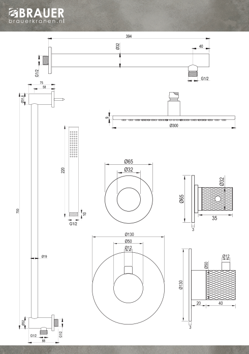 Carving doucheset inbouw Brauer, verkrijgbaar bij