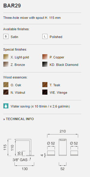 Home - Wastafels - Wastafelkraan - Opbouw wastafelkraan - CEA Design BAR29 3-gats wastafelmengkraan