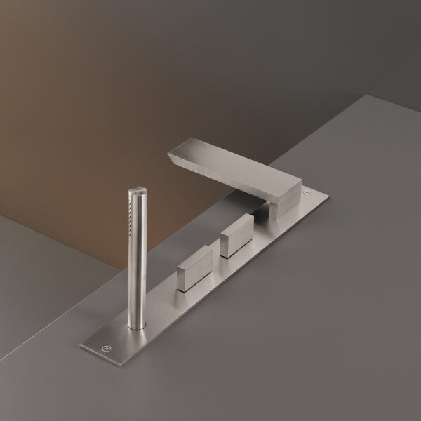 BAR37 is een complete kraanset voor op de badrand. U gebruikt de uitloop om het bad te vullen. Met de cilindrische handdouche spoelt u gemakkelijk na of wast u het haar. De twee progressieve mengknoppen werken soepel. U draait van koud naar warm in één vloeiende beweging. De set bestaat uit twee progressieve mengkranen, een uitloop en een cilindrische handdouche. De handdouche heeft een diameter van ongeveer 18 millimeter. De uitloop is laag en strak met een hoogte rond 35 millimeter en is voorzien van een flow straightener voor een mooie rechte straal. De handdouche geeft extra comfort bij het wassen en schoonspoelen. De plaatsing op de badrand bespaart ruimte aan de muur en houdt de opstelling strak.