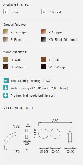 De wandkraan met de 2 mengkranen zijn gemaakt van zowel Geborsteld als Gepolijst Roestvrij staal met keuze uit afwerkingen zoals geborsteld & gepolijst RVS, Black Diamond, Bronze, Copper en Light Gold. De minimalistische vorm past in moderne badkamers, wellnessruimtes en hotels. Dankzij het tijdloze ontwerp combineert de kraan moeiteloos met opzetkommen en meubelwastafels. Door de wandmontage blijft uw werkblad overzichtelijk en makkelijk schoon. En de onderhoud is vrij eenvoudig. Reinig met lauw water en milde zeep en droog na met een zachte doek. Vermijd schurende middelen en agressieve chemicaliën.
