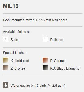 MIL16 is een opbouw wastafelmengkraan voor montage op het blad of direct op de wastafel. U gebruikt de kraan bij handen wassen, tandenpoetsen en snel afspoelen. De rechte uitloop geeft fijne werkruimte boven de kom en helpt spatten te beperken. Totale hoogte circa 115 millimeter. Uitvoering met vaste uitloop en eenhendelbediening voor water en temperatuur. De perlator levert ongeveer vijf liter per minuut. Dat geeft een comfortabele straal en helpt water besparen. Daarnaast is dit de hoge variant van de CEA Design MIL12 Opbouw wastafelmengkraan en daarnaast is dit ook de lagere variant van de CEA Design MIL17 hoge Opbouw wastafelmengkraan.