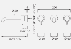 Daarnaast is deze prachtige roestvrij stalen CEA MIL38 3-gats wandmengkraan is te verkrijgen in meerdere uitvoeringen: