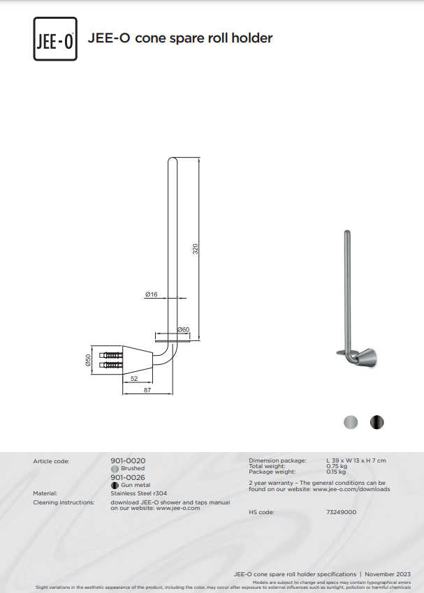 Cone toiletborstel JEE-O, Wand reserve toiletrolhouder rvs. Nu verkrijgbaar bij Stone Company. Hier vindt u artikelen van het hoogwaardige merk JEE-O.