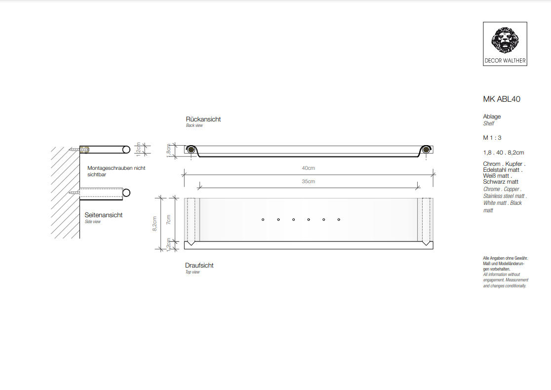 De Decor Walther Mikado zeepschaal is een symbool van verfijning en functionaliteit. Beschikbaar in verschillende maten en afwerkingen, biedt deze zeepschaal een perfecte combinatie van esthetiek en bruikbaarheid. De maten zijn 1,8 cm x 40 cm x 8,2 cm. Deze diversiteit maakt het mogelijk om de zeepschaal aan te passen aan de specifieke behoeften van jouw badkamer.