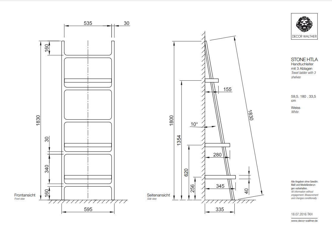- Handdoekladder HTL: 180 x 60 x 34 cm