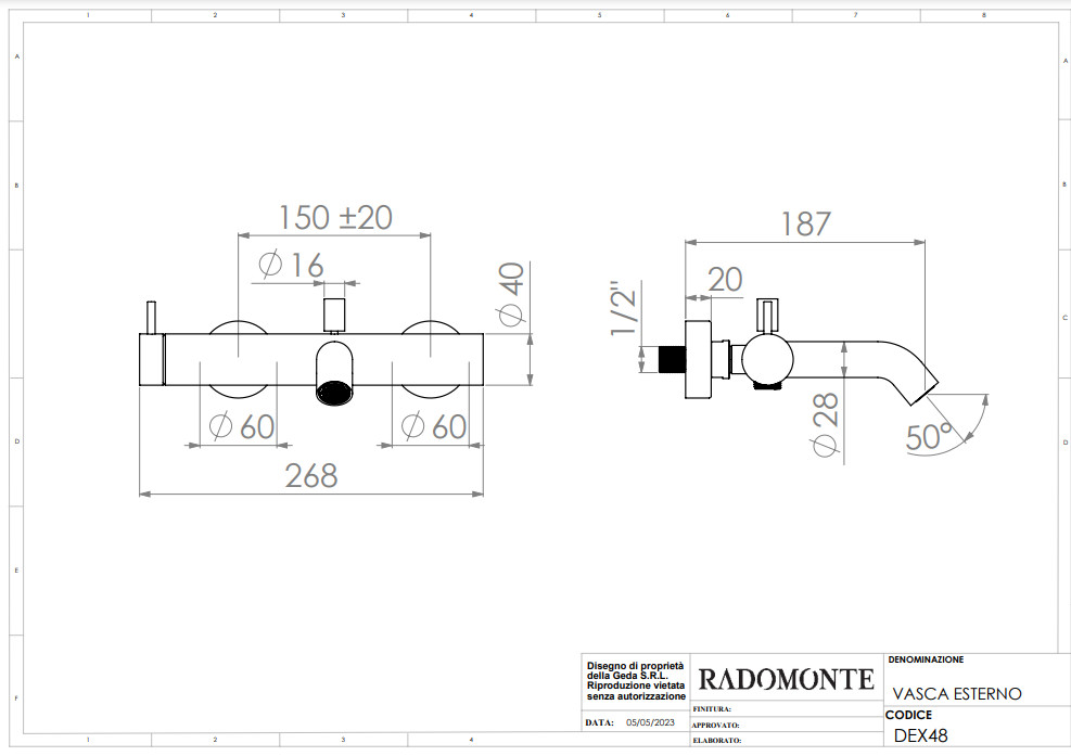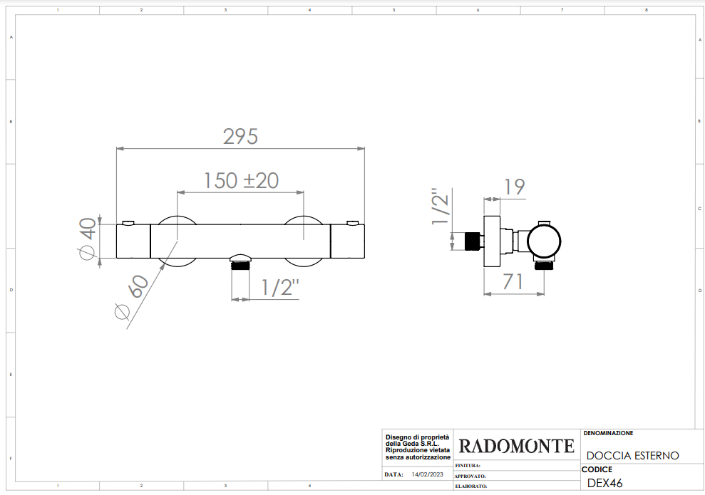 De thermostatische douchemengkraan is vervaardigd uit hoogwaardige materialen die zorgen voor een lange levensduur en een robuuste uitstraling. Radomonte gebruikt zorgvuldig geselecteerde materialen, zodat je verzekerd bent van kwaliteit en duurzaamheid in je badkamer. De thermostatische douchemengkraan is niet alleen mooi, maar ook perfect afgestemd op de ruimte. De afmetingen van de DEX thermostatische douchemengkraan zijn: