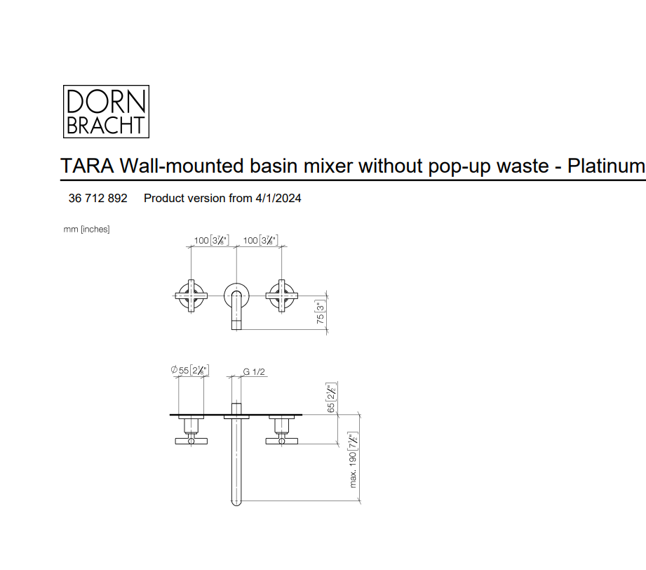 Home - Wastafels - Wastafelkraan - Inbouw wastafelkraan - Dornbracht Tara 3-gats wandmengkraan