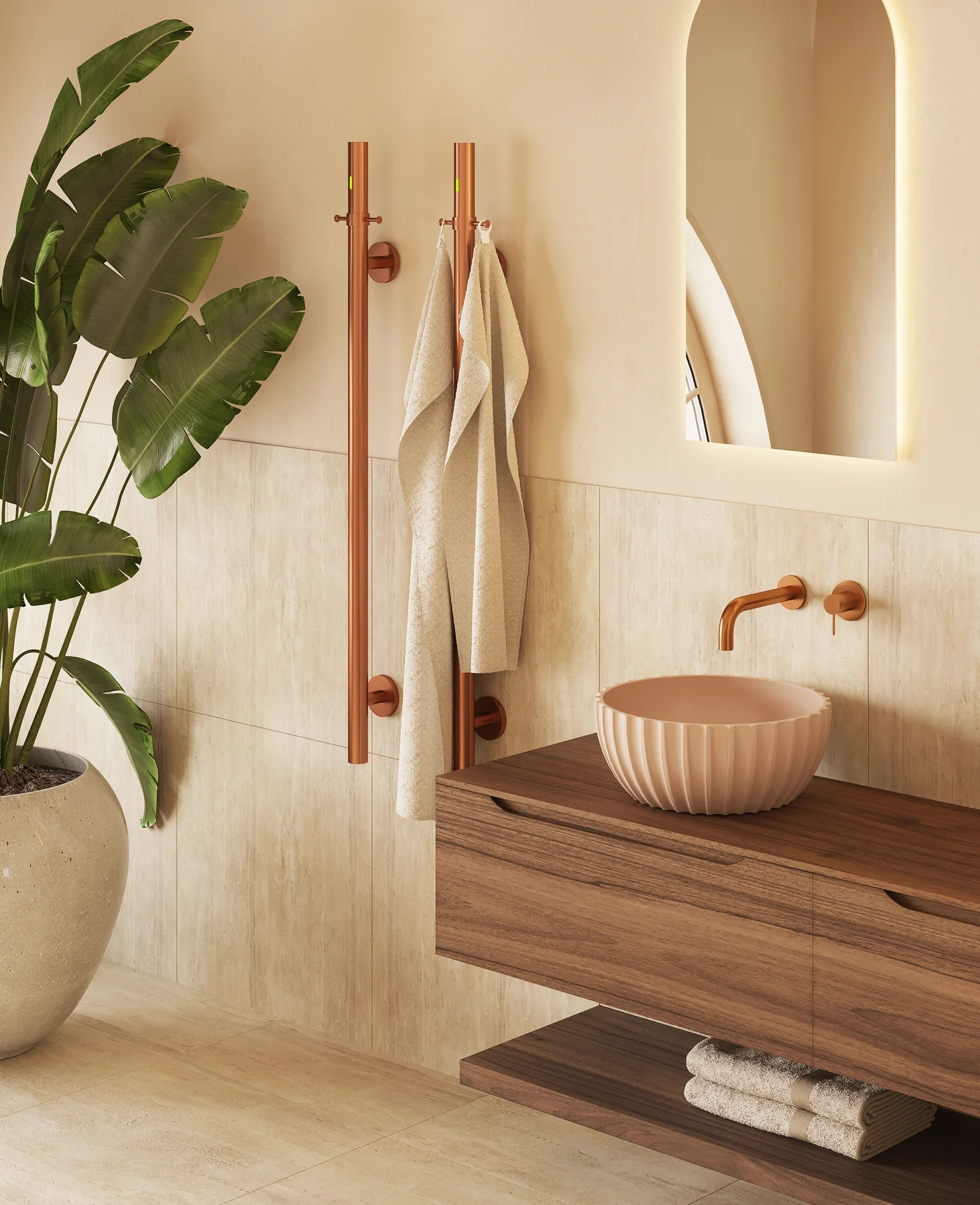Amsterdam elektrische handdoekwarmer DRY. Nu verkrijgbaar bij Stone Company.