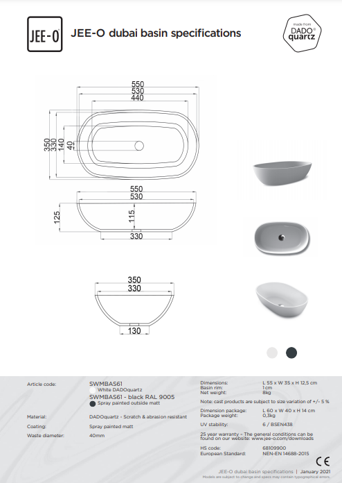 Sinds de oprichting van het bedrijf in 2004 is JEE-O uitgegroeid tot internationale speler en inmiddels zijn de producten wereldwijd te verkrijgen. In de collectie vind je meerdere series en stijlen met douches, kranen, baden, waskommen, toiletten en accessoires. Douches en kranen zijn gemaakt van hoogwaardig rvs, de baden en waskommen van het mooie materiaal DADOquartz.