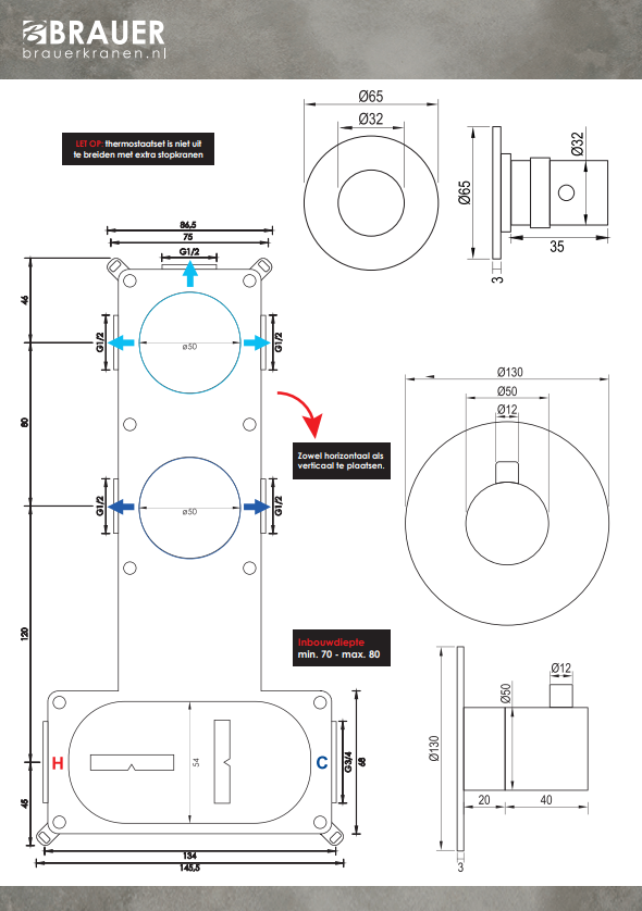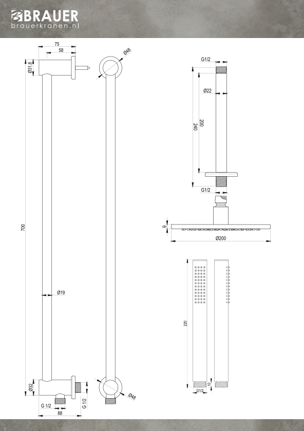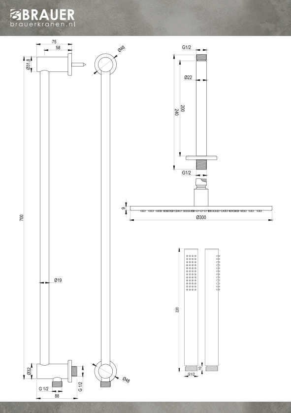 Brauer, het toonaangevende merk in de sanitairindustrie, staat bekend om zijn ongeëvenaarde focus op kwaliteit en duurzaamheid. Met een onderscheidende nadruk op milieuvriendelijke praktijken, benadrukt Brauer zijn inzet voor het verminderen van waterverbruik zonder in te leveren op prestaties. De hoofddouches van 20 cm en 30 cm vertonen een indrukwekkend waterverbruik van respectievelijk 5L/min en 7L/min bij een druk van 1 bar, terwijl ze behoren tot de volumestroomklasse A. Zelfs bij een druk van 3 bar blijft het verbruik beperkt tot 7L/min, waardoor Brauer's betrokkenheid bij duurzaamheid duidelijk naar voren komt.