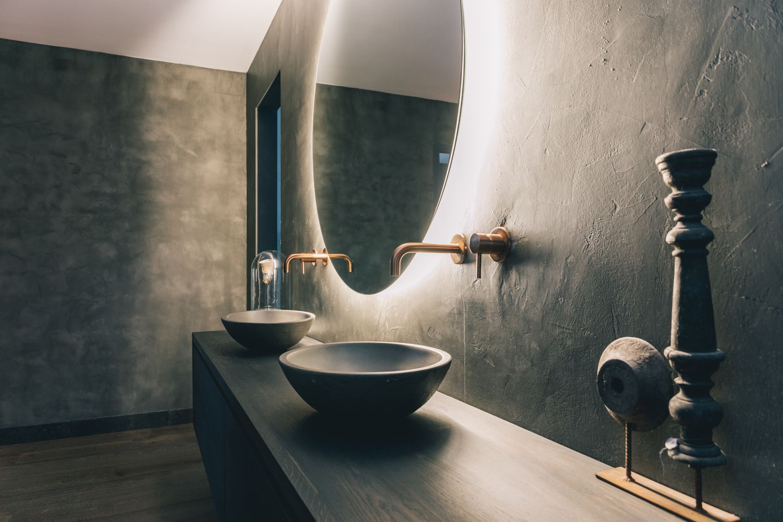 Deze betonnen waskom is verkrijgbaar in verschillende kleuren en is goed te combineren met beton ciré in uw badkamer.