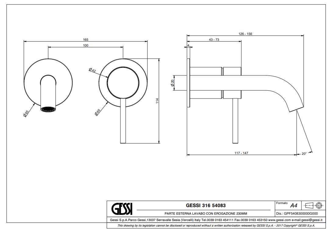 GESSI316 Flessa inbouw wastafelmengkraan, artikelcodes