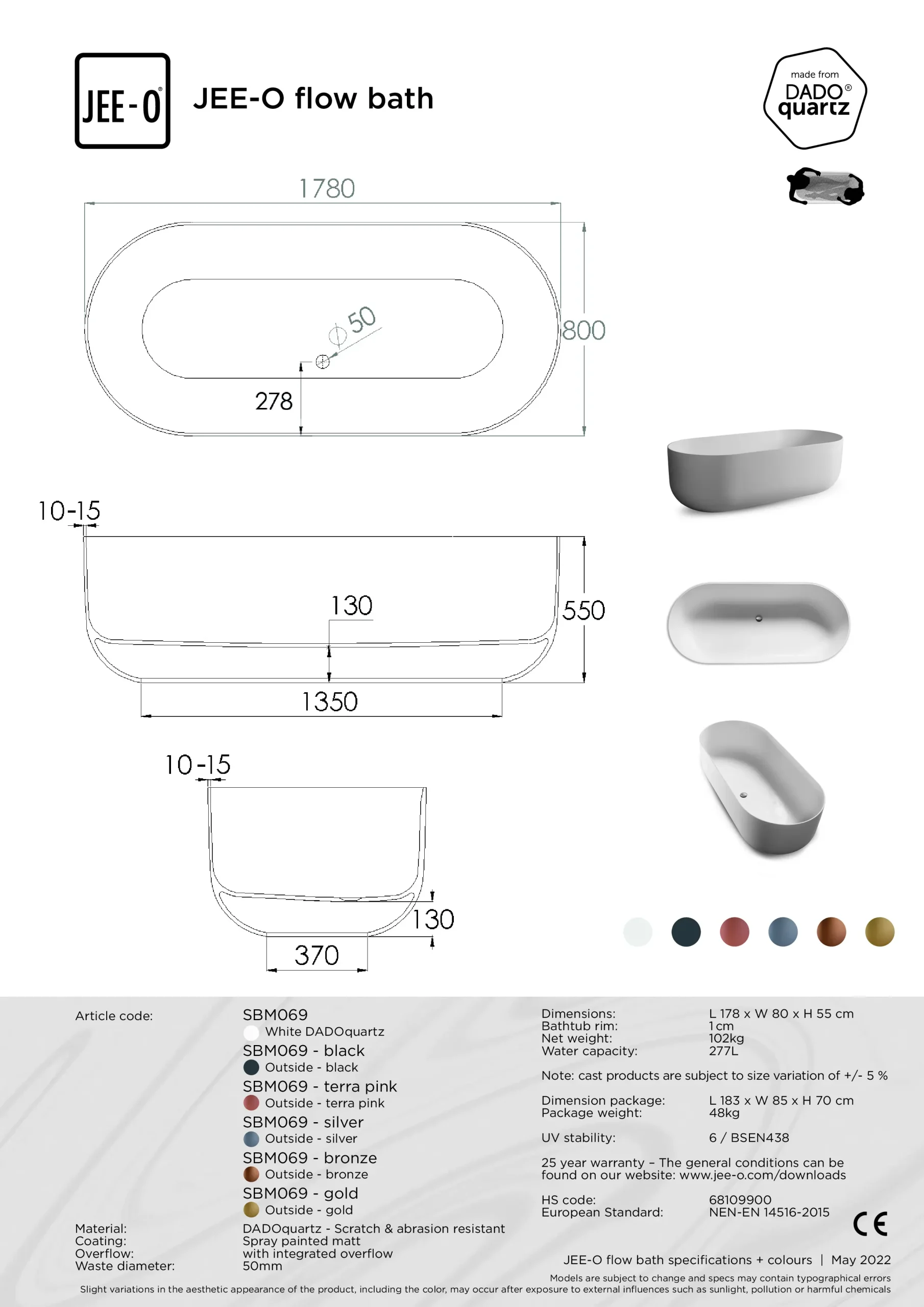 | Kleur | Buitenzijde brons, Buitenzijde goud, Buitenzijde mat zwart, Buitenzijde terra roze, Buitenzijde zilver, Dark Steel, Mat wit |