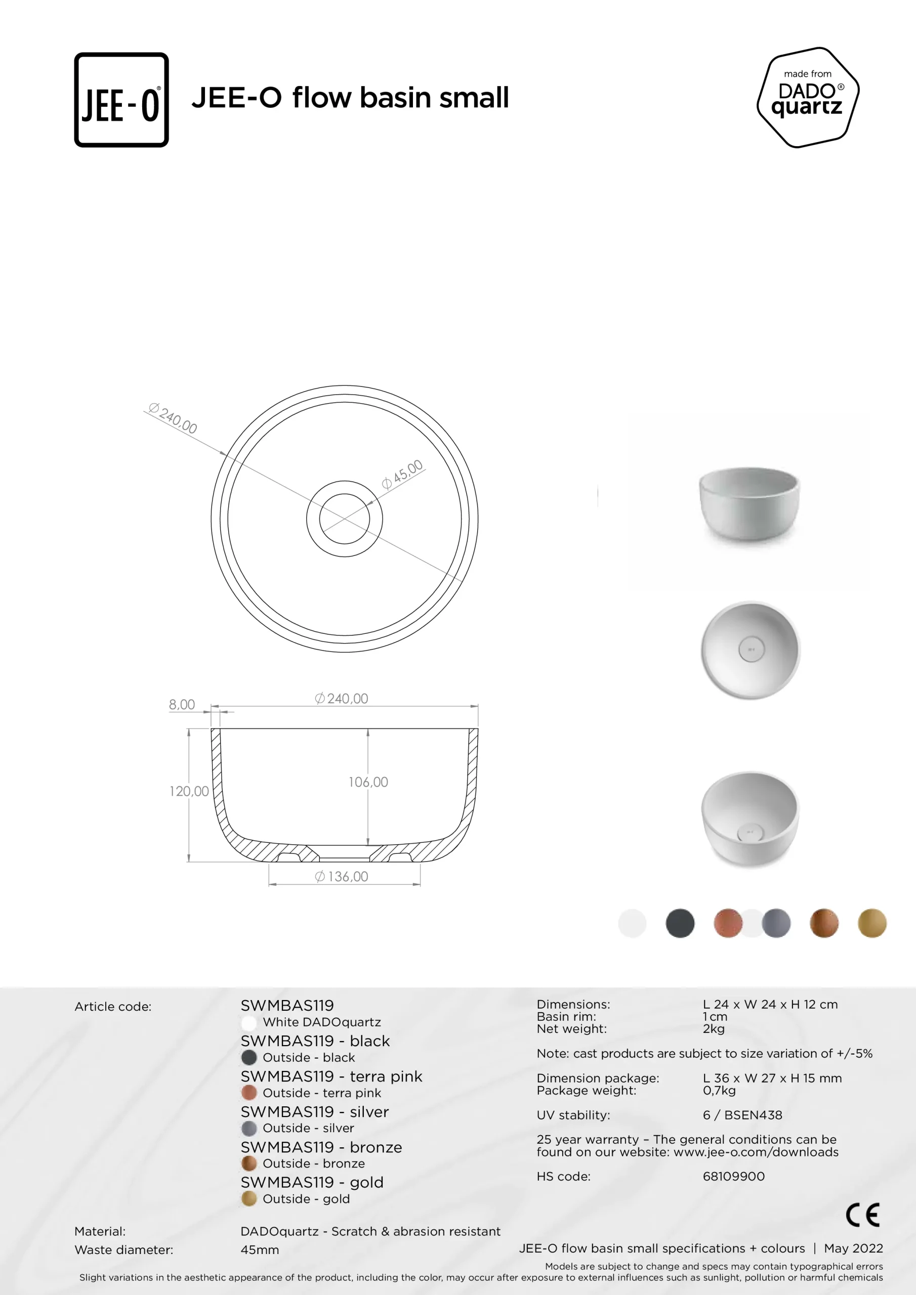 Sinds de oprichting van het bedrijf in 2004 is JEE-O uitgegroeid tot internationale speler en inmiddels zijn de producten wereldwijd te verkrijgen. In de collectie vind je meerdere series en stijlen met douches, kranen, baden, waskommen, toiletten en accessoires. Douches en kranen zijn gemaakt van hoogwaardig rvs, de baden en waskommen van het mooie materiaal DADOquartz.