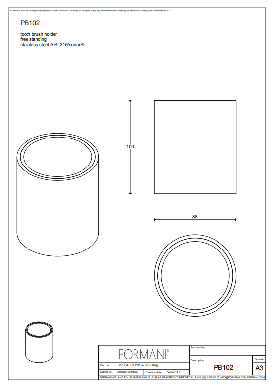 De tandenborstelbeker van Piet Boon is uitgevoerd in RVS materiaal en witte Corian afwerking. Met de PB102 houdt u uw tandenborstels netjes bij elkaar, zonder dat ze nat op uw wastafel liggen. Door de extra ruimte kunt u er ook een tube tandpasta in zetten, zodat alles bij de hand is. Omdat hij vrijstaand is, plaatst u hem overal: op uw wastafel, badkamermeubel of een plank. Ideaal voor drukke gezinnen die snel willen schoonmaken, maar ook perfect in een strak vormgegeven gastentoilet of luxe spa-badkamer. Voor meer informatie over de producten kunt u altijd