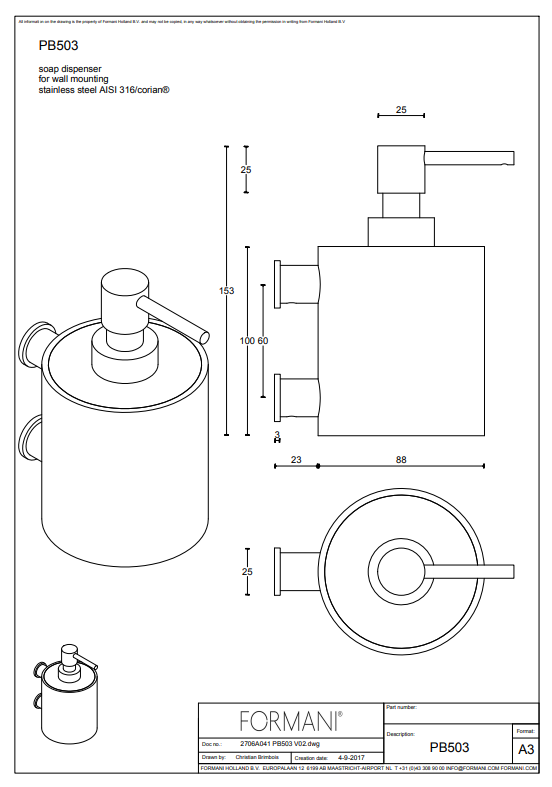 Home - Accessoires - Zeepaccessoires - Formani ONE Piet Boon PB503 Wandzeepdispenser