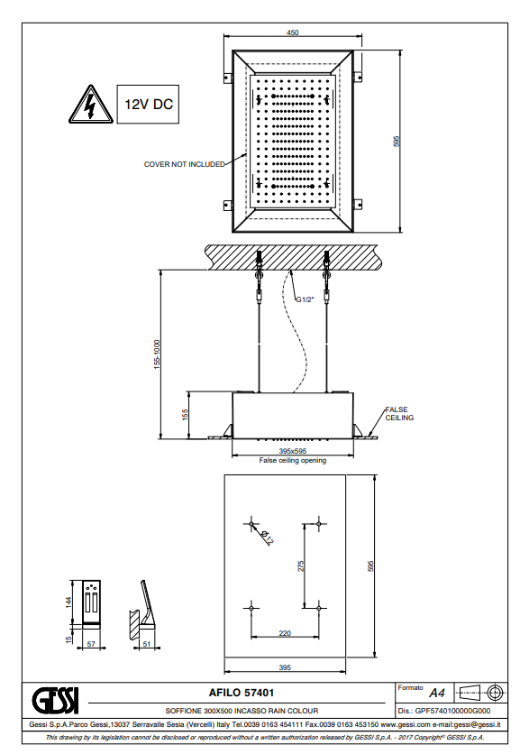 Het GESSI Afilo 300x500 inbouw douchesysteem (artikelnrs. 57401 & 57006) brengt wellness naar de badkamer met een royale regendouche en geïntegreerde chromotherapie. Vervaardigd uit hoogwaardig messing en ontworpen voor plaatsing in een verlaagd plafond, wordt dit systeem geleverd met elektronische componenten, waterdichte afstandsbediening en ophanghaak. Voor de werking is een externe 12V 01723 voeding nodig (niet inbegrepen). Combineer voor een complete installatie met een wand-gemonteerde thermostatische mengkraan met twee uitgangen (niet inbegrepen).