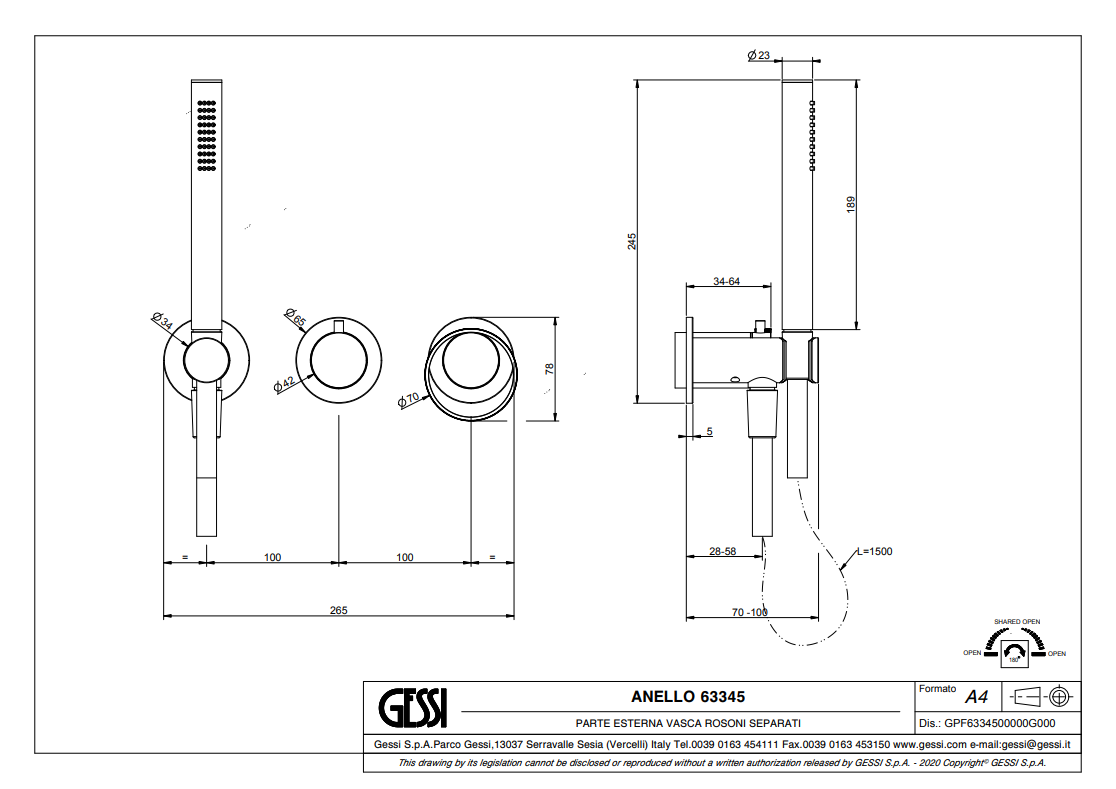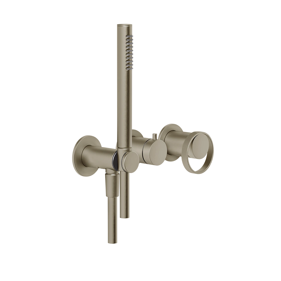 De Gessi Anello badcombinatie komt uit de Anello serie. Deze wand gemonteerde badcombinatie bestaat wordt geleverd met een flexibele slang van 1,50 meter, mengkraan en een kalkwerende handdouche. Met een tweeweg-omsteller kun je gemakkelijk schakelen tussen het bad en de handdouche, wat zorgt voor optimaal gebruiksgemak.