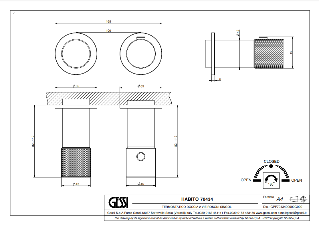 Gessi produceert haar producten op bestelling. Dit betekent dat elk product maatwerk is en niet geruild of geretourneerd kan worden. Controleer daarom zorgvuldig alle specificaties en afmetingen voordat u bestelt. Dit voorkomt teleurstellingen.
