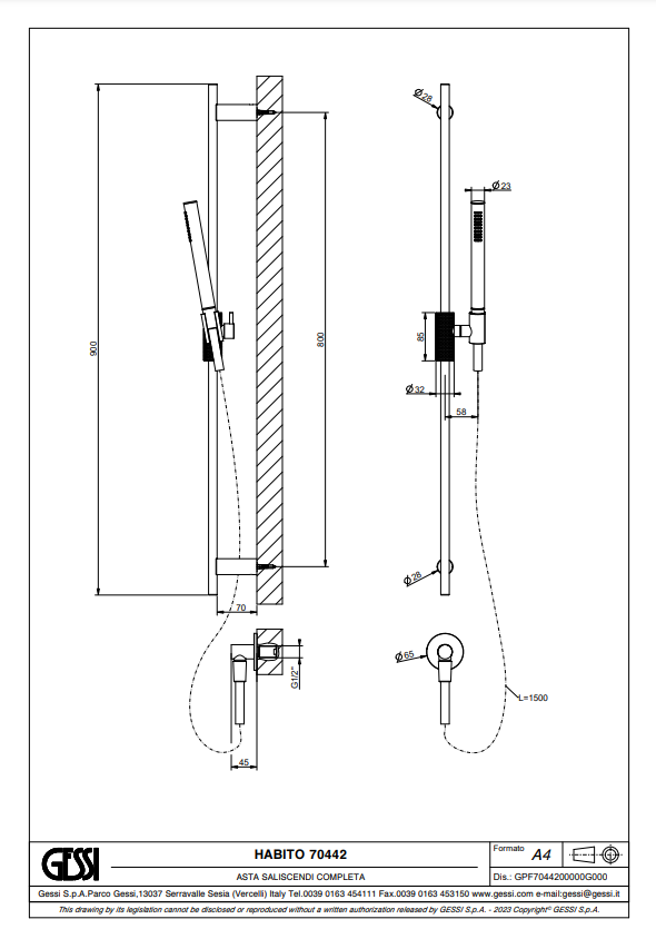- 70442: Handdouche van 1,5 meter met een flexibele slang, glijstang en wateraansluitpunt voor optimaal gebruiksgemak.