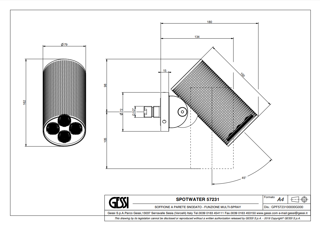 Spotwater douchekop afmetingen: