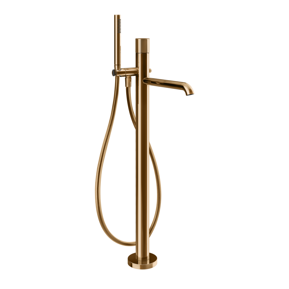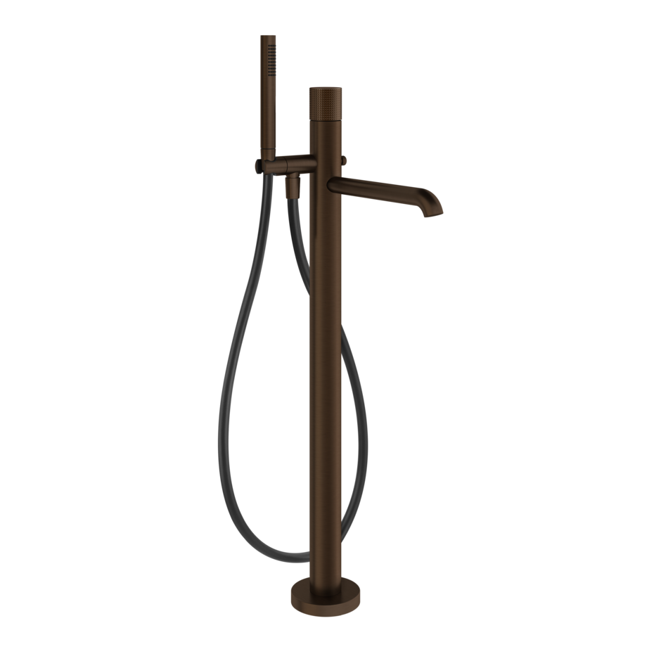 De vrijstaande Gessi Habito badkraan met het Cesello patroon voegt een vleugje luxe toe aan uw badkamer. Deze badkraan is voorzien van een staafhanddouche en automatische omsteller, waarmee je eenvoudig kunt wisselen tussen de badkraan en de handdouche. De bijgeleverde doucheslang zorgt voor extra gebruiksgemak.