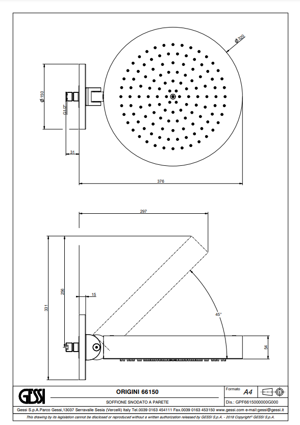 Habito wand-hoofddouchekop GESSI, artikelcode