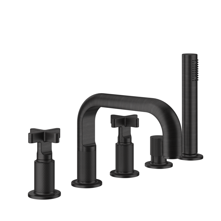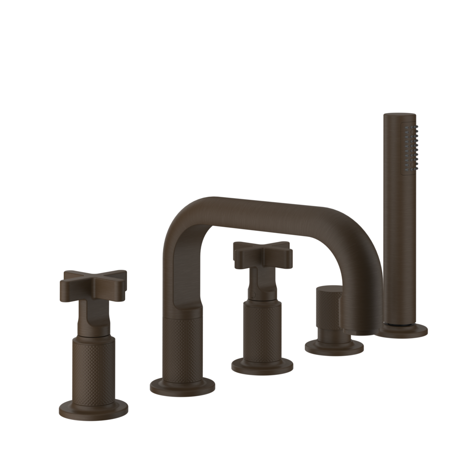 De De GESSI Inciso badrandcombinatie met uitloop behoort tot de Inciso serie, terwijl het Cesello patroon in de afwerking uit de Habito-collectie komt. Deze 5-gats badmengkraan, met omsteller, uitloop, een 1,5 meter flexibele slang en een uittrekbare handdouche biedt gebruiksgemak in uw badkamer. De Gessi Inciso badrandcombinatie is verkrijgbaar in twee verschillende modellen: de Inciso -badrandcombinatie en de Inciso+ badrandcombinatie.