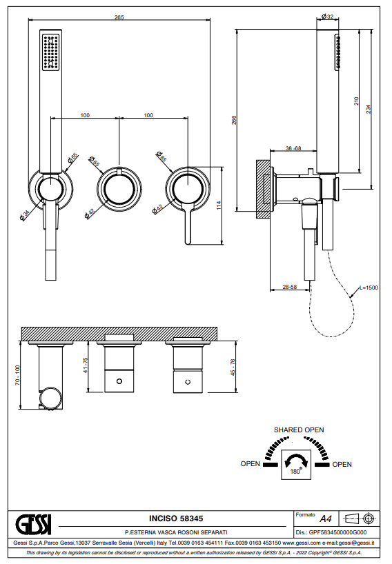 De GESSI 2-weg stop-omstel handdouche is een slim product van de Inciso Shower serie. Dit product wordt aan de muur gemonteerd en is voorzien van een omstelknop om eenvoudig tussen twee wateruitgangen te schakelen. Dit wand gemonteerde onderdeel is ontworpen voor gebruik met een douchekraan. De handdouchehouder is slim geïntegreerd, waardoor de handdouche altijd binnen handbereik is.