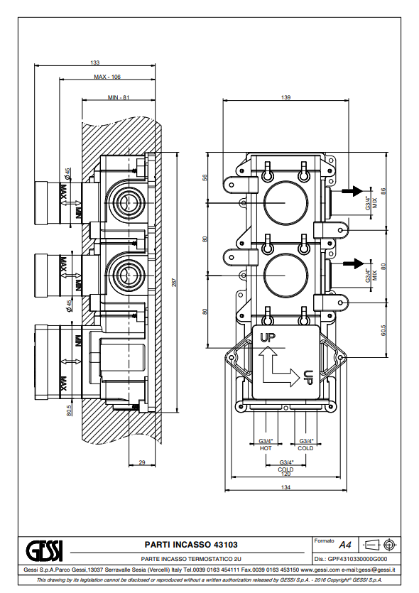 GESSI Inciso thermostatische wandmengkraan (artikelcode 58214) combineert strak Italiaans design met betrouwbare techniek. Vervaardigd uit hoogwaardig